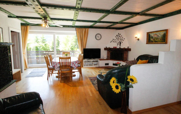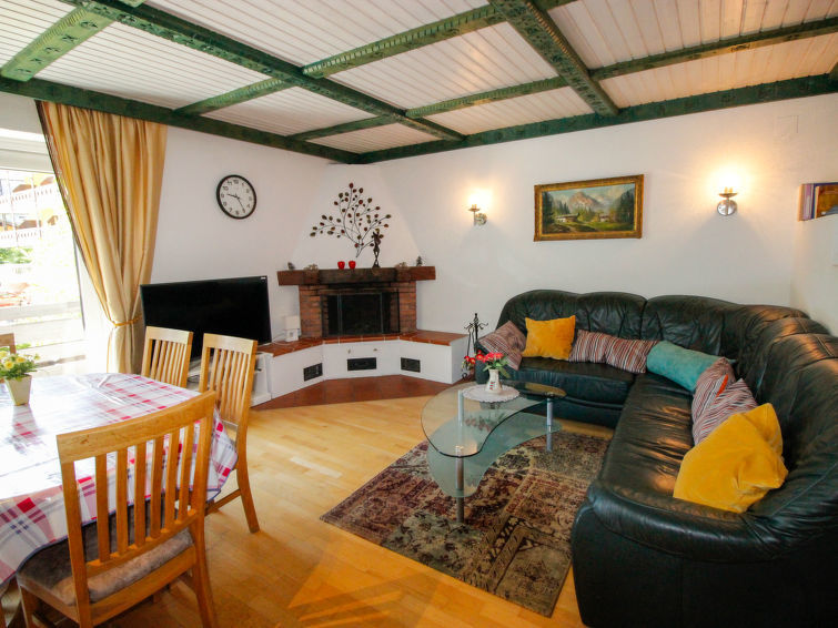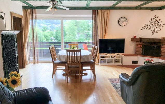 3-Zimmer-Wohnung 101 m2 im 1. Stock. Komfortabel und geschmackvoll eingerichtet: Eingang. Wohn-/Esszimmer mit 1 Doppeldiwanbett, offenem Kamin, Esstisch und Sat-TV. Ausgang zur Terrasse. 2 Doppelzimmer. Küche (4 Kochplatten, Backofen, Geschirrspüler, Toaster, Wasserkocher, Mikrowelle) mit Bar. Bad/WC, Bad/Dusche/WC. Grosse Terrasse 75 m2. Terrassenmöbel, Gartengrill, Liegestühle. Herrliche Sicht auf die Berge, das Tal und den Garten. Zur Verfügung: Waschmaschine. Internet (Wireless LAN, gratis). Bitte beachten: Nichtraucher-Unterkunft. Rauchmelder. Achtung: Kleinkinder und Babies gelten als volle Person und können nicht kostenfrei mitgenommen werden. 50403-000215-2020