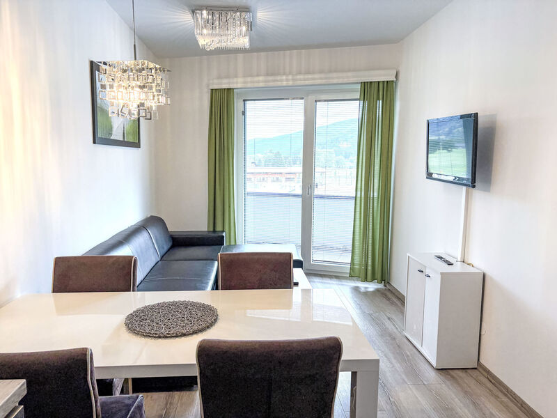 "Mentenwirt Alp Lungau", 3-Zimmer-Wohnung 68 m2. Komfortabel und modern eingerichtet: Wohn-/Esszimmer mit TV (Flachbildschirm). 2 Zimmer, jedes Zimmer mit 1 Bett und 1 Doppelbett. Ausgang zum Balkon. Offene Küche (Backofen, Geschirrspüler, 4 Glaskeramikplatten, Wasserkocher, Mikrowelle, elektrische Kaffeemaschine). Dusche, sep. WC. Heizung. Balkon. Balkonmöbel, Loggia. Zur Verfügung: Haartrockner. Internet (WLAN, gratis). Bitte beachten: Nichtraucher-Unterkunft. Rauchmelder. 50509-000320-2020