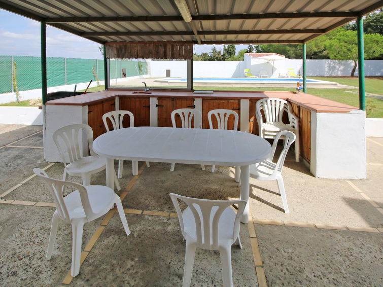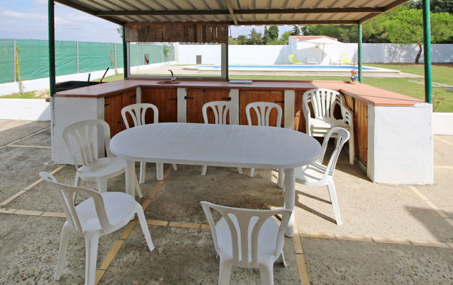 Rustikales Einfamilienhaus "Candela". 6 km vom Zentrum von Chiclana, 12 km vom Zentrum von Conil de la Frontera, 8 km vom Meer. Zur Alleinbenutzung: Grundstück 1'300 m2 (eingezäunt), Bäumen, Schwimmbad (8 x 4 m, 1 - 190 cm tief, 01.01.-31.12.). Aussendusche, Terrasse, Gartenmöbel, Grill, Parkplatz auf dem Grundstück. Einkaufsgeschäft 3 km, Sandstrand "La Barrosa" 8 km. Bitte beachten: Fahrzeug empfohlen.