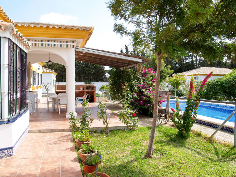 Einfamilienhaus "Hanna". 6 km vom Zentrum von Chiclana, 10 km vom Zentrum von Conil de la Frontera, 25 km vom Zentrum von Cadiz, 6 km vom Meer, 6 km vom Strand. Zur Alleinbenutzung: Grundstück 1'000 m2 (eingezäunt), Rasen und Bäumen, Schwimmbad (8 x 4 m, 01.01.-31.12.). Aussendusche, Parkplatz auf dem Grundstück. Einkaufsgeschäft 1 km. Bitte beachten: Fahrzeug empfohlen.