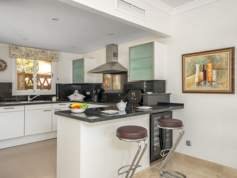 "Marques de Atalaya", 3-Zimmer-Wohnung 120 m2, im Dachgeschoss, Südwestlage. Geräumig und hell, schön und modern eingerichtet: Wohn-/Esszimmer mit Sat-TV. Ausgang zur Terrasse. 1 Zimmer mit 1 Bett (90 cm, Länge 190 cm), 1 Ausziehbett (2 Pers. 2 x 90 cm, Länge 190 cm). 1 Zimmer mit begehbarer Kleiderschrank mit 1 Doppelbett (180 cm, Länge 190 cm), Bad/Dusche/WC (privat). Ausgang zur Terrasse. Offene Küche (Backofen, Geschirrspüler, 4 Glaskeramikherd Platten, Toaster, Wasserkocher, Mikrowelle, Tiefkühler, elektrische Kaffeemaschine). Bad/Bidet/WC. Klimaanlage, Warmluftheizung. Terrasse 20 m2 teilweise überdacht, grosse Terrasse 150 m2. Terrassenmöbel. Schöne Sicht auf das Meer und die Landschaft. Zur Verfügung: Waschmaschine, Wäschetrockner, Bügeleisen, Haartrockner. Internet (Wireless LAN, gratis). Bitte beachten: Nichtraucher-Unterkunft. Der Gefrierschrank hat eine Eismaschine. Leitungswasser wird gefiltert. VFT/MA/46117