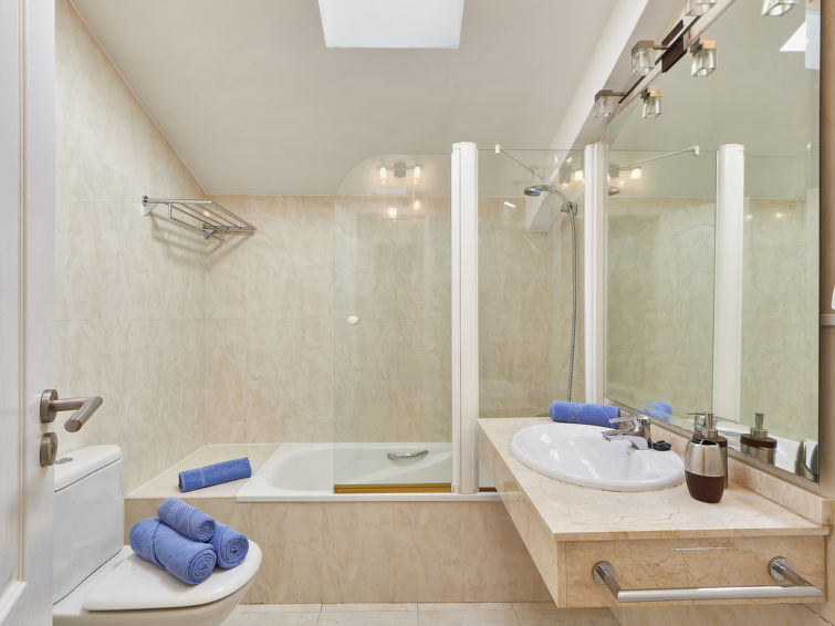 "Duplex Milla de Oro", 4-Zimmer-Wohnung 148 m2 auf 2 Stockwerken. Komfortabel eingerichtet: Wohn-/Esszimmer mit Digital-TV, Klimaanlage und Warmluftheizung. Ausgang zur Terrasse. Küche (Backofen, Geschirrspüler, 4 Glaskeramikplatten, Toaster, Wasserkocher, Mikrowelle, Tiefkühler, elektrische Kaffeemaschine, Kapseln für die Kaffeemaschine (NESPRESSO) extra). Bad/WC. Obergeschoss: 1 Zimmer mit 1 franz. Bett (135 cm, Länge 190 cm), Dusche/Bidet/WC, Klimaanlage und Warmluftheizung. 1 Kinderzimmer mit 1 Ausziehbett (2 x 80 cm, Länge 190 cm), Klimaanlage und Warmluftheizung. 1 Zimmer mit 2 Betten (80 cm, Länge 190 cm), Klimaanlage und Warmluftheizung. Dusche/Bidet/WC. Fernsicht auf das Meer. Zur Verfügung: Waschmaschine, Safe, Bügeleisen, Kinderhochstuhl, Babybett bis 2 Jahre, Haartrockner. Internet (WLAN, gratis). Parkplatz Nr. 1. Bitte beachten: geeignet für Familien. Nichtraucher-Haus. VUT/MA/69353