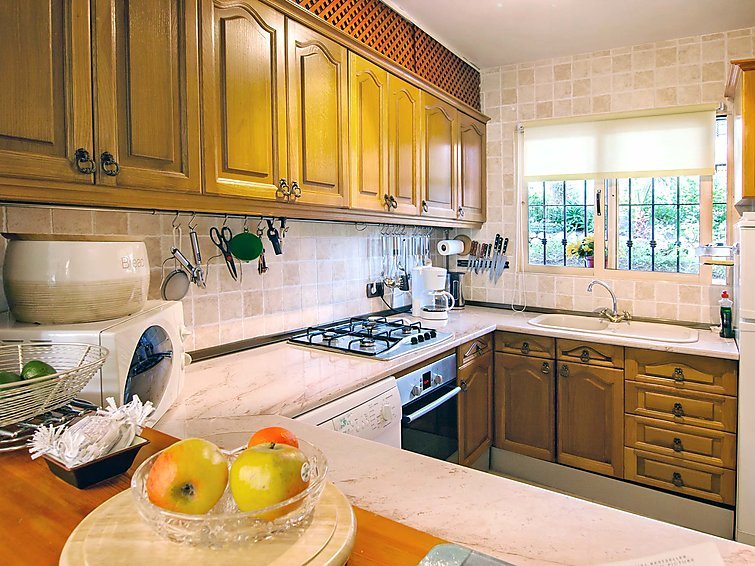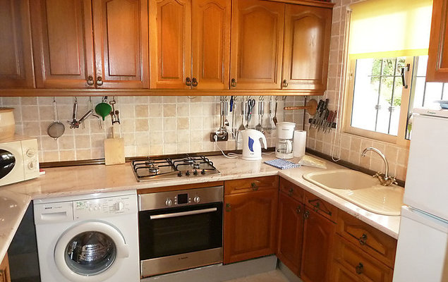 3-Zimmer-Wohnung 70 m2, im Erdgeschoss. Zweckmässig und komfortabel eingerichtet: Wohn-/Esszimmer mit Digital-TV, Internationale TV-Sender und DVD. Ausgang zum Garten, zur Terrasse, zur Veranda. 1 Zimmer mit 2 Betten (90 cm). Ausgang zum Garten, zur Terrasse, zur Veranda. 1 Zimmer mit 1 franz. Bett. Küche (Backofen, Toaster, Wasserkocher, Mikrowelle, Tiefkühler, elektrische Kaffeemaschine, Dampfgarer) mit Durchreiche. Dusche/WC. E-Heizung. Terrasse 9 m2, Garten. Terrassenmöbel, Liegestühle. Seitliche Sicht auf das Meer. Zur Verfügung: Waschmaschine, Bügeleisen. Internet (Wireless LAN, gratis). Internetanschluss (und Fernsehen) über fiberoptische Verkabelung. VFT/MA/07806