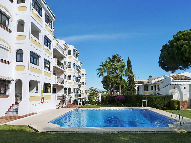 Gemütliches Appartementhaus "Las Acacias", Baujahr 1985. Im Ortsteil Torrenueva, im Ort, 1 km vom Zentrum von La Cala de Mijas, 19 km vom Zentrum von Marbella, 7 km vom Zentrum von Fuengirola, 250 m vom Meer, 250 m vom Strand. Zur Mitbenutzung: Garten mit Rasen, Schwimmbad (8 x 8 m, saisonale Verfügbarkeit: 01.Jan.-31.Dez. Öffnungszeiten Schwimmbad: 08:00-21:30). Tennis (extra). In der Anlage: Fahrstuhl. Parkplatz. Lebensmittelgeschäft 100 m, Supermarkt 2 km, Restaurant, Bar 150 m, Bushaltestelle "Marbella - Fuengirola" 200 m, Sandstrand "El Bombo (Cala Mijas)" 250 m. Tennis 150 m.