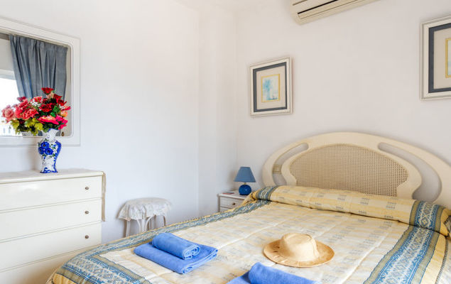 3-Zimmer-Wohnung 60 m2 im 2. Stock. Objekt geeignet für 2 Erwachsene + 2 Kinder. Zweckmässig und komfortabel eingerichtet: Wohn-/Esszimmer mit TV und Digital-TV (Flachbildschirm), Klimaanlage und Warmluftheizung. Ausgang zur Terrasse. 1 Zimmer mit 2 Betten, Klimaanlage und Warmluftheizung. Ausgang zur Terrasse. 1 Zimmer mit 1 franz. Bett. Offene Küche (Backofen, 4 Glaskeramikherd Platten, Toaster, Wasserkocher, Mikrowelle, Tiefkühler, elektrische Kaffeemaschine). Bad/WC. Terrasse. Terrassenmöbel. Sicht auf das Schwimmbad und den Garten. Zur Verfügung: Waschmaschine, Bügeleisen. Geeignet für Familien. VFT/MA/30262