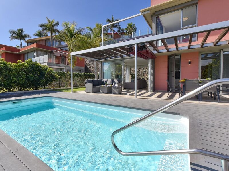 Moderne, komfortable Villa "Los Dragos 13". Im Ortszentrum von Maspalomas, ruhige, sonnige Lage. Zur Alleinbenutzung: Garten (eingezäunt) mit Rasen, Schwimmbad eckig (6 x 3 m, 100 - 100 cm tief, saisonale Verfügbarkeit: 01.Jan. - 31.Dez.). Aussendusche. Im Hause: Sonnenterrasse, Klimaanlage. Parkplatz auf dem Grundstück, öffentliche Parkplätze auf der Strasse. Bushaltestelle "Las Crucitas" 19 km. Der Besitzer akzeptiert keine Jugendgruppen. Bitte beachten: Flugplatz 40 km vom Haus. Die Nachbarschaft ist sehr lärmempfindlich. Ruhe und gutes Benehmen wird erwartet.