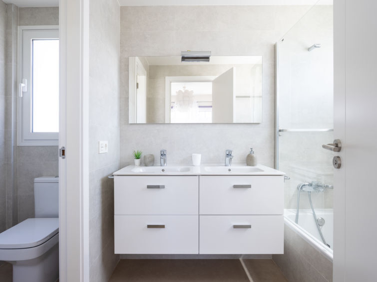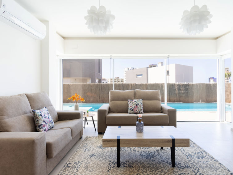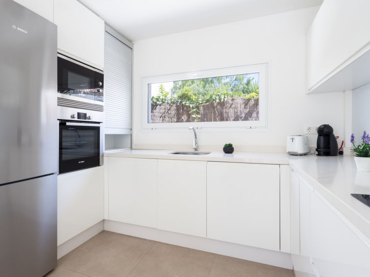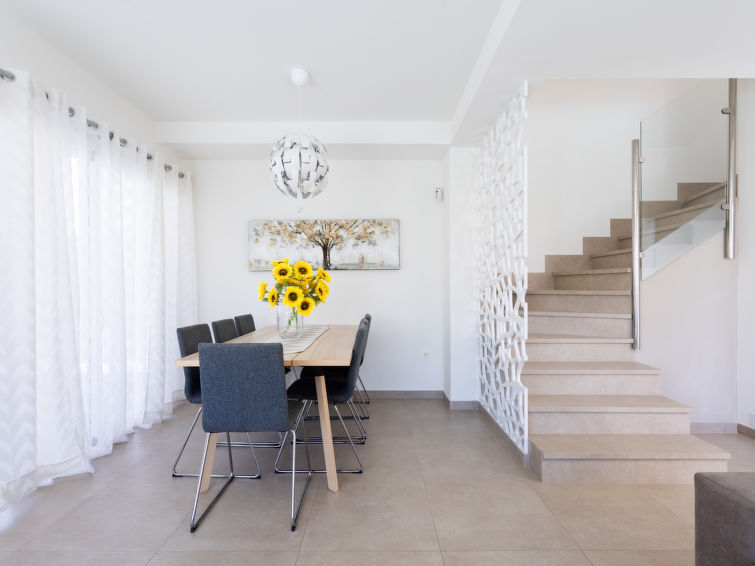 4-Zimmer-Villa 146 m2 auf 2 Stockwerken. Modern und stilvoll eingerichtet: Wohn-/Esszimmer. Ausgang zum Garten, zur Terrasse, zum Schwimmbad. Küche (Backofen, Geschirrspüler, 3 Glaskeramikplatten, Toaster, Wasserkocher, Mikrowelle, Tiefkühler, elektrische Kaffeemaschine). Sep. WC. Keine Heizmöglichkeit. Obergeschoss: (geländerlose Treppe) 1 Zimmer mit 1 Doppelbett (180 cm, Länge 200 cm). 1 Zimmer mit 1 Doppelbett (180 cm, Länge 180 cm) mit 1 Doppelbett (180 cm, Länge 180 cm). Bad/WC, Dusche/WC, Doppelwaschbecken. Terrasse, grosser Garten. Terrassenmöbel, Balkonmöbel, Liegestühle (4). Sicht auf das Meer, das Schwimmbad und die Landschaft. Zur Verfügung: Waschmaschine. Bitte beachten: für Kleinkinder nicht geeignet. Nichtraucher-Haus. VV-38-4-0091666