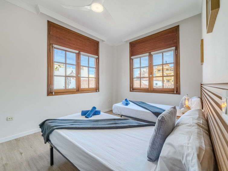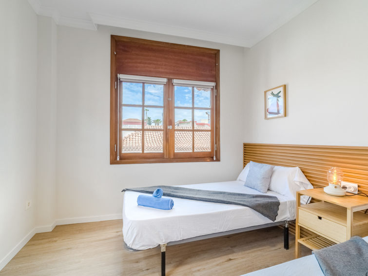 "Yubal IV", 4-Zimmer-Wohnung 90 m2 im 3. Stock. Objekt geeignet für 6 Erwachsene. Geräumig und hell, zweckmässig und komfortabel eingerichtet: Wohn-/Esszimmer mit Panoramafenster mit Digital-TV und Ventilator. Ausgang zum Balkon. 1 Zimmer mit 1 franz. Bett (150 cm, Länge 190 cm), Dusche/Bidet/WC, Ventilator und Boiler (60 Liter). 1 Zimmer mit 1 franz. Bett (1 x 150 cm, Länge 190 cm), Ventilator. 1 Zimmer mit 2 Betten (90 cm, Länge 190 cm), Ventilator. Küche (Backofen, 4 Glaskeramikplatten, Toaster, Wasserkocher, Mikrowelle, elektrische Kaffeemaschine). Dusche/Bidet/WC. Boiler (60 Liter). Keine Heizmöglichkeit. Kleiner Balkon. Balkonmöbel. Sicht auf die Ortschaft. Zur Verfügung: Bügeleisen, Haartrockner. Internet (WLAN, gratis). Bitte beachten: geeignet für Familien Wohnung auf Strassenseite. Nichtraucher-Unterkunft. Feuerlöscher. VV-38-4-00907079 // Reg. Nr.: ESFCTU0000380090000050320000000000000VV-38-4-00907079
