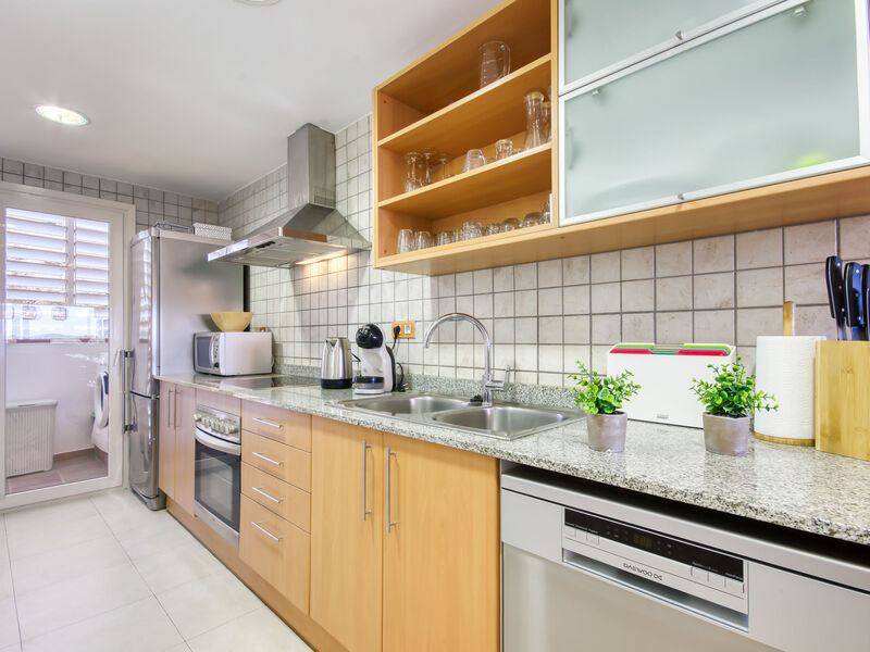 4-Zimmer-Wohnung 100 m2, im Erdgeschoss. Geräumig und hell, komfortabel und modern eingerichtet: Wohn-/Esszimmer mit Panoramafenster mit Esstisch, Digital-TV und Flachbildschirm. Ausgang zur Terrasse. 2 Zimmer, jedes Zimmer mit 1 franz. Bett. 1 Zimmer mit 1 franz. Bett und Bad/Bidet/WC. Ausgang zur Terrasse. Offene Küche (4 Kochplatten, Backofen, Geschirrspüler, Mikrowelle, Tiefkühler) mit Durchreiche. Bad/Bidet/WC. Keine Heizmöglichkeit. Grosse Terrasse 30 m2, Terrasse 15 m2. Terrassenmöbel. Herrliche Sicht auf das Schwimmbad und die Landschaft. Zur Verfügung: Waschmaschine. Internet (WLAN, gratis). Bitte beachten: TV nur ES. HUTG010944