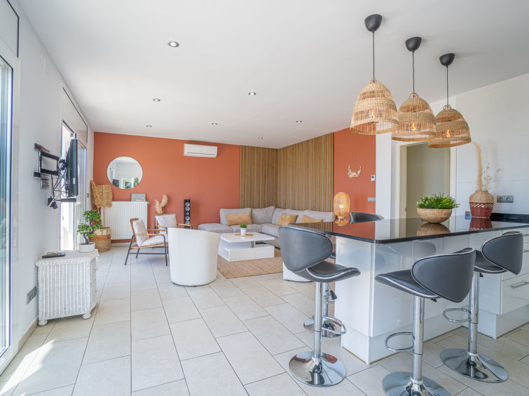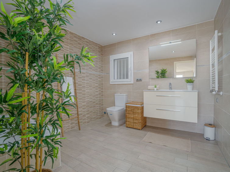 Grosse, moderne, gemütliche Villa "Panorama", auf 2 Stockwerken. Im Ort Palau Savardera, 8 km vom Zentrum von Roses, ruhige, sonnige Lage im Villenviertel, verkehrsberuhigte Zone, 7 km vom Meer, 7 km vom Strand, Richtung Süden. Zur Alleinbenutzung: grosser terrassierter Garten (eingezäunt) mit Pflanzen und Bäumen, Schwimmbad eckig (8 x 4 m, 100 - 200 cm tief, saisonale Verfügbarkeit: 01.Mai. - 30.Okt.) mit Innentreppe. Terrasse, Gartenmöbel, Grill, Parkplatz (für 3 Autos) auf dem Grundstück. Lebensmittelgeschäft 3 km, Supermarkt 3 km, Restaurant, Bar, Café 500 m, Bushaltestelle "Moventis estació bus Roses" 8.8 km, Bahnstation "Estación Tren Vilajuiga" 6 km, Sandstrand "Roses" 9 km. Sporthafen 9 km, Golfplatz (18 Loch) 12 km, Segelschule 9 km, Tennis 3 km, Reitstall 5 km. Nahe gelegene Sehenswürdigkeiten: Zona de padel con bar y restaurante 500 m, Parque Acuático Roses Aquabrava 3 km, Túnel del viento y Skydive Empuriabrava 12 km, Cadaqués 17 km, Museo Dalí Figueres 22 km, Castillo y festival de Perelada 15 km. Bitte beachten: Fahrzeug empfohlen. Jugendgruppen nur auf Anfrage. Die Schlüsselübergabe findet bei der Agentur Interhome in Empuriabrava statt.