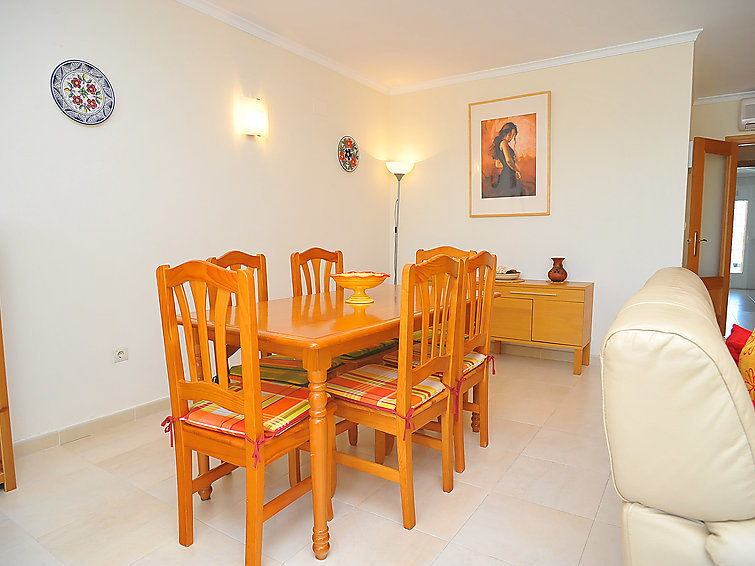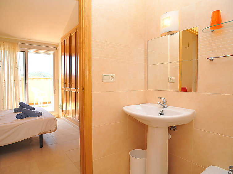 4-Zimmer-Wohnung 110 m2 auf 2 Stockwerken im 2. Stock. Zweckmässig eingerichtet: Wohn-/Esszimmer mit Sat-TV, Digital-TV, Stereoanlage, DVD, Klimaanlage und Ventilator. Ausgang zum Balkon. 1 Zimmer mit 2 Betten und Klimaanlage. Küche (Backofen, Geschirrspüler, 3 Glaskeramikherd Platten, Mikrowelle, Tiefkühler, elektrische Kaffeemaschine). Bad/Bidet/WC. Obergeschoss: 1 Zimmer mit 1 franz. Bett (180 cm, Länge 200 cm), Bad/Bidet/WC und Klimaanlage. Ausgang zur Terrasse. 1 Zimmer mit 2 Betten und Klimaanlage. Ausgang zur Terrasse. Dusche/WC. 2 Terrassen 21 m2. Terrassenmöbel. Sicht auf die Berge. Zur Verfügung: Waschmaschine. Internet (Wireless LAN, gratis). Garage Nr. 34. AT-431151-A