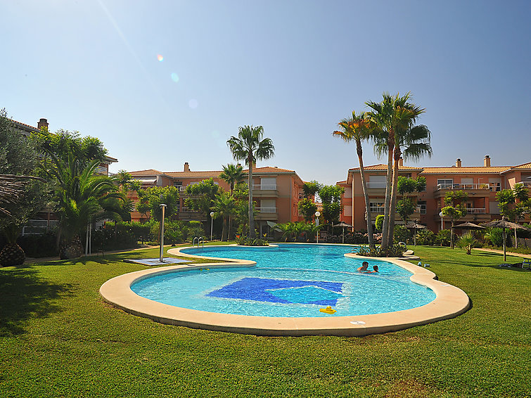 Schöne Residenz "La Senia". Zentrale Lage, 500 m vom Meer. Zur Mitbenutzung: Garten (eingezäunt) mit Rasen, Pflanzen, Blumen und Bäumen, Schwimmbad (saisonale Verfügbarkeit: 01.Jan.-31.Dez.) mit Innentreppe. Kinderbecken. Im Hause: Fahrstuhl, Zentralheizung. Supermarkt 50 m, Restaurant 200 m, Sandstrand "Arenal" 1.7 km, Kieselstrand "Montanar I" 500 m. Bitte beachten: In diesem Haus sind weitere Ferienwohnungen mietbar.