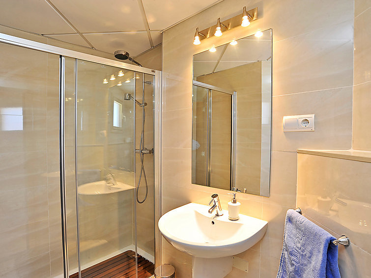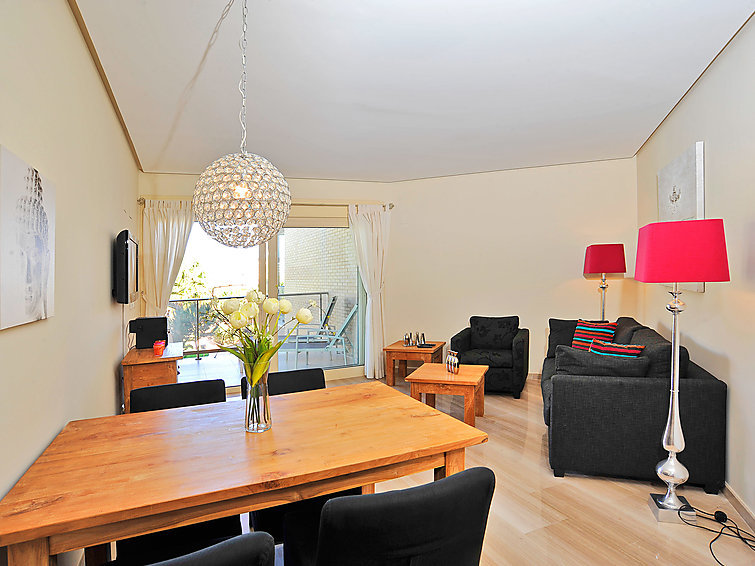 3-Zimmer-Wohnung 82 m2 im 1. Stock. Komfortabel und schön eingerichtet: Wohn-/Esszimmer mit Sat-TV und Digital-TV (Flachbildschirm), Stereoanlage und elektrischem Rollladen. Ausgang zum Balkon. 1 Zimmer mit 1 franz. Bett (2 x 90 cm, Länge 200 cm), Bad/Bidet/WC, Doppelwaschbecken und TV (Flachbildschirm). Ausgang zum Balkon. 1 Zimmer mit 2 Betten. Küche (Backofen, Geschirrspüler, 4 Glaskeramikherd Platten, Mikrowelle, Tiefkühler, elektrische Kaffeemaschine). Dusche/Bidet/WC. Klimaanlage. Balkon 13 m2. Terrassenmöbel, Liegestühle (2). Sicht auf das Schwimmbad. Zur Verfügung: Waschmaschine. Internet (Wireless LAN, gratis). Garage Nr. 66. Bitte beachten: Nichtraucher-Unterkunft. Rauchmelder. AT-440255-A